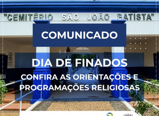 No próximo dia 2 de novembro, sábado, será celebrado o Dia de Finados, data em que familiares e amigos visitam os túmulos de seus entes queridos. Visando proporcionar melhores condições de visitação pública, a Secretaria de Serviços Municipais orienta a população: