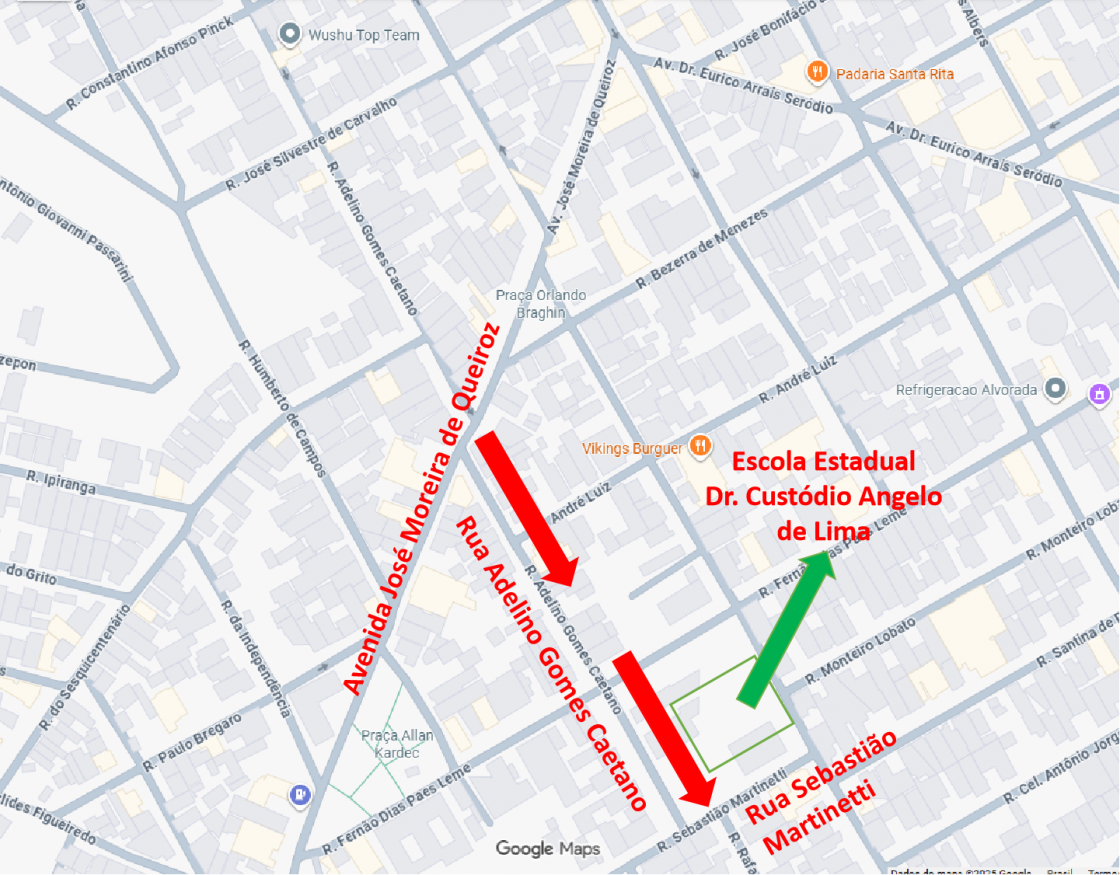 Com a finalidade de melhorar a circulação de veículos, o fluxo de trânsito, garantir a segurança de alunos e também prevenir acidentes, a partir do próximo dia 15 de dezembro, segunda-feira, ocorrerá alteração no sentido de direção na Rua Adelino Gomes Caetano, entre a Avenida José Moreira de Queiroz e a rua Sebastião Martinetti que possui sentido duplo de direção.