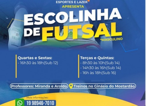 Acontecem no Ginásio de Esportes José Luis Amâncio - Mostardão, aulas de Futsal masculino para crianças e adolescentes conforme dias e horários abaixo: