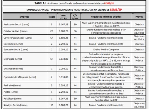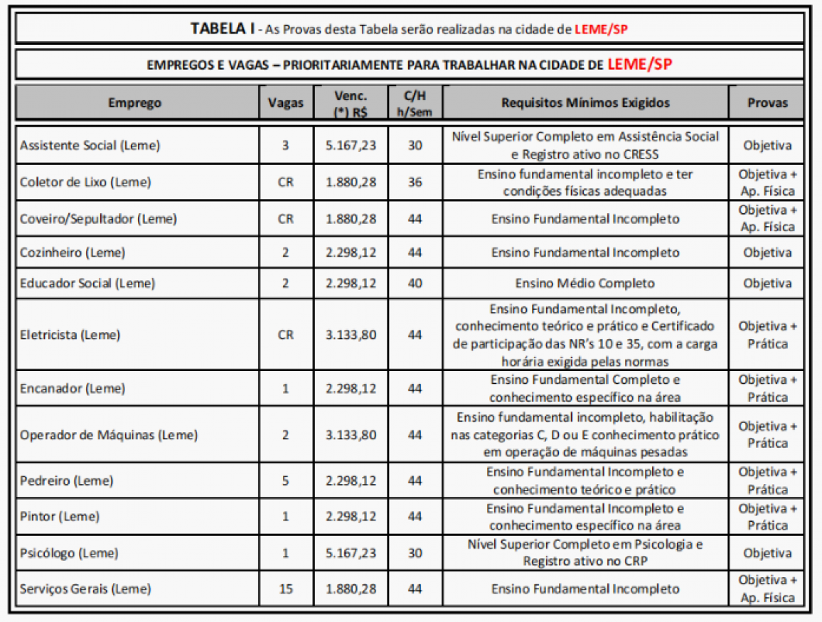 A realização da prova objetiva está prevista para o dia 03 de maio de 2026 no município de Leme/SP. Poderá, contudo, haver mudanças na data prevista dependendo do número de inscritos e a disponibilidade de locais para a realização das provas.