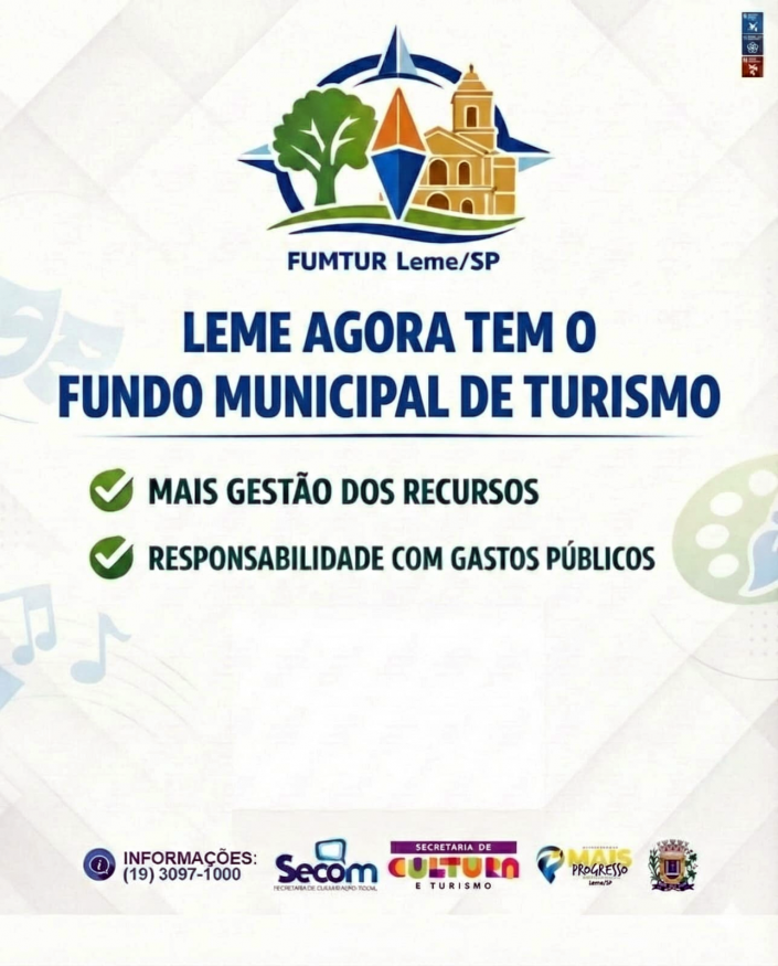 Com a criação do FUMTUR, Leme passa a contar com um mecanismo oficial para gestão e aplicação de recursos exclusivos do turismo — condição essencial para acessar investimentos estaduais destinados aos municípios turísticos por meio do DADETUR, órgão do Governo de São Paulo responsável pelo fomento ao setor.