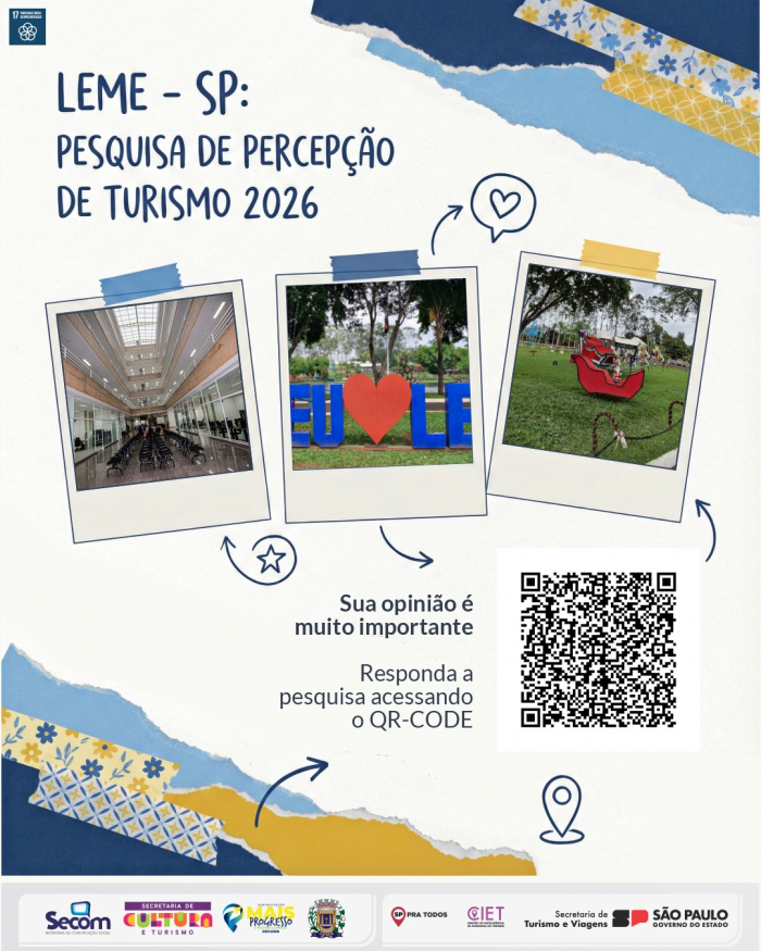 A Prefeitura de Leme reforça o convite para que a população participe e contribua com o futuro do município. Sua opinião é essencial para fortalecer o turismo e impulsionar o desenvolvimento da cidade.