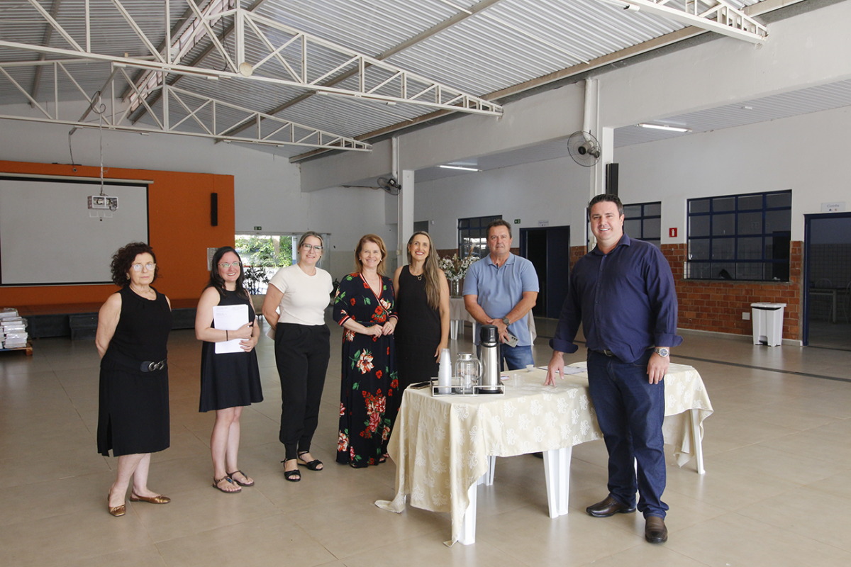 Estiveram presentes na reunião o Prefeito Claudemir Borges, o Diretor de Educação, Carlos Alberto Carvalho, a Coordenadora Geral Pedagógica, Adriana Cancian, a equipe pedagógica da Secretaria de Educação e os gestores das escolas da rede municipal (diretores, vice-diretores e professores coordenadores).