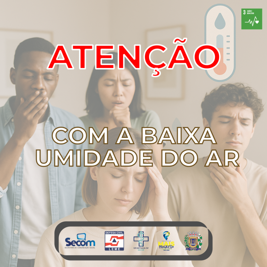 A Prefeitura Municipal de Leme, por meio da Secretaria de Saúde, alerta e orienta a população sobre os cuidados com a saúde em situações de baixa umidade do ar.