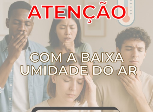 De acordo com o Ministério da Saúde, a baixa umidade pode provocar uma série de desconfortos e complicações, como ressecamento da pele, olhos, nariz e garganta, além de agravar doenças respiratórias crônicas, como asma, rinite e bronquite. Crianças, idosos e pessoas com problemas pulmonares estão entre os mais vulneráveis.