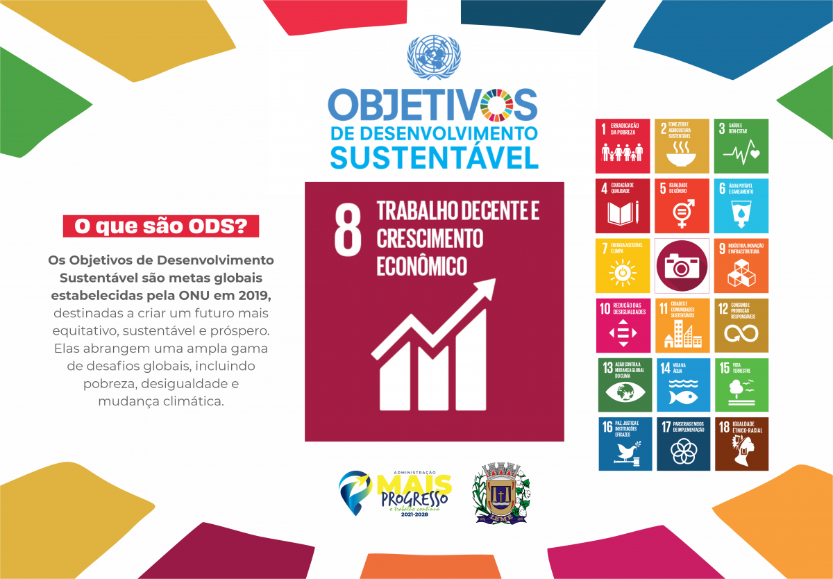 A ODS 8 tem como objetivo promover o crescimento econômico sustentado, inclusivo e sustentável, garantindo condições de trabalho dignas, incentivo à inovação, apoio ao empreendedorismo e ampliação das oportunidades para a população.