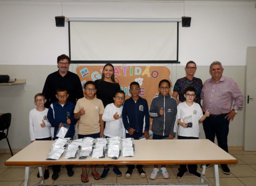 Entrega dos óculos foi realizada na segunda-feira (09), concluindo a ação na EMEB Profª Maria Amália Bonfanti Lemos